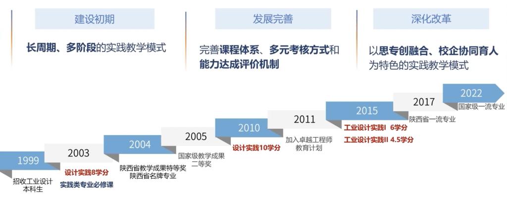 1999年至2008年,课程初创贯穿7个学期的实践类必修课程,初步构成多阶段实践培育模式。2009年至2015年,课程基于OBE进一步完美课程系统,构成“工业设想实践I、II”系列课程,明白“校内实践”取“校外实践和社会办事”的分工定位,成立起多元查核取能力告竣评价机制。2016年至今,正在教育部产学合做协同育人等项目支撑下,课程持续深化,扶植校企协同育人实践,将社会办事取校企共创纳入课程内容,校企协同育报酬特色的实践讲授模式。“工业设想实践II”依托校企合做实践和实正在项目开展讲授,环绕“社会查询拜访、公益办事、设想项目实践”三个实践模块组织实施。学生外行业企业查询拜访、社会查询拜访和公益办事中深切领会国情、社情、平易近情,环绕教育、医疗、养老等平易近生范畴发觉问题、凝练需求,并正在实正在课题中开展设想实践。